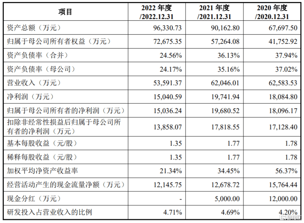 2020年至2022年,众辰科技实现营收约6.26亿元、6.2亿元、5.36亿元,净利润分别约1.81亿元、1.97亿元、1.5亿元,存在一定波动。其中,2022年公司营收和净利润双双下滑。