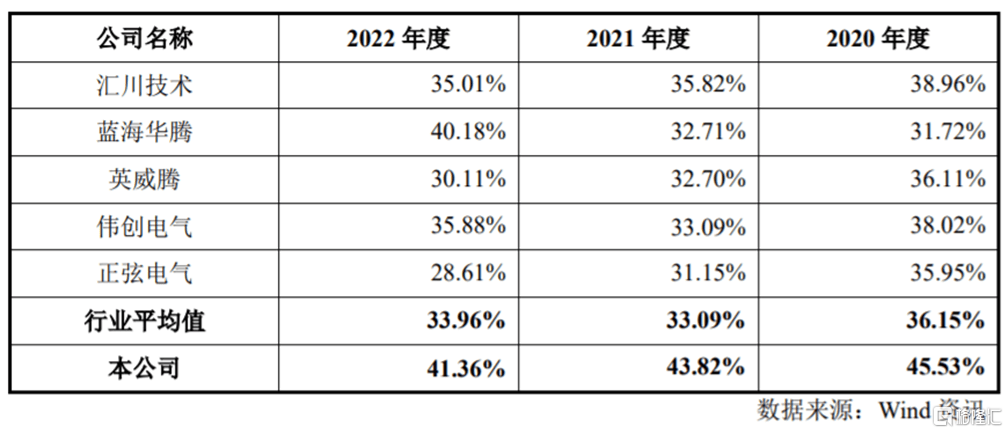 报告期内,众辰科技的综合毛利率分别为45.53%、43.82%和41.36%,呈逐年下滑趋势,但仍高于可比上市公司平均值。