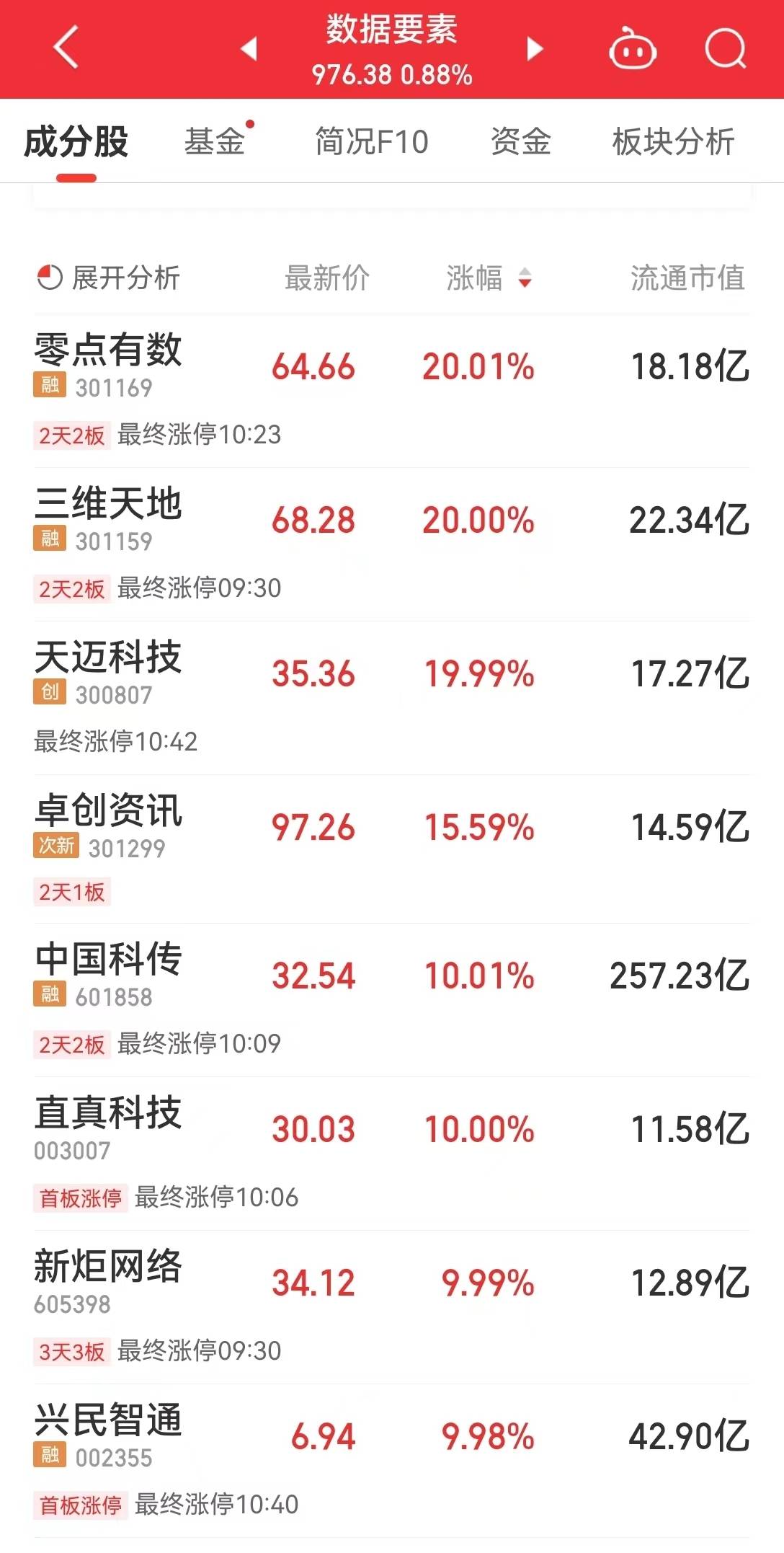 卓创资讯、浩瀚深度、上海钢联、浙数文化等涨都有不同程度上涨。