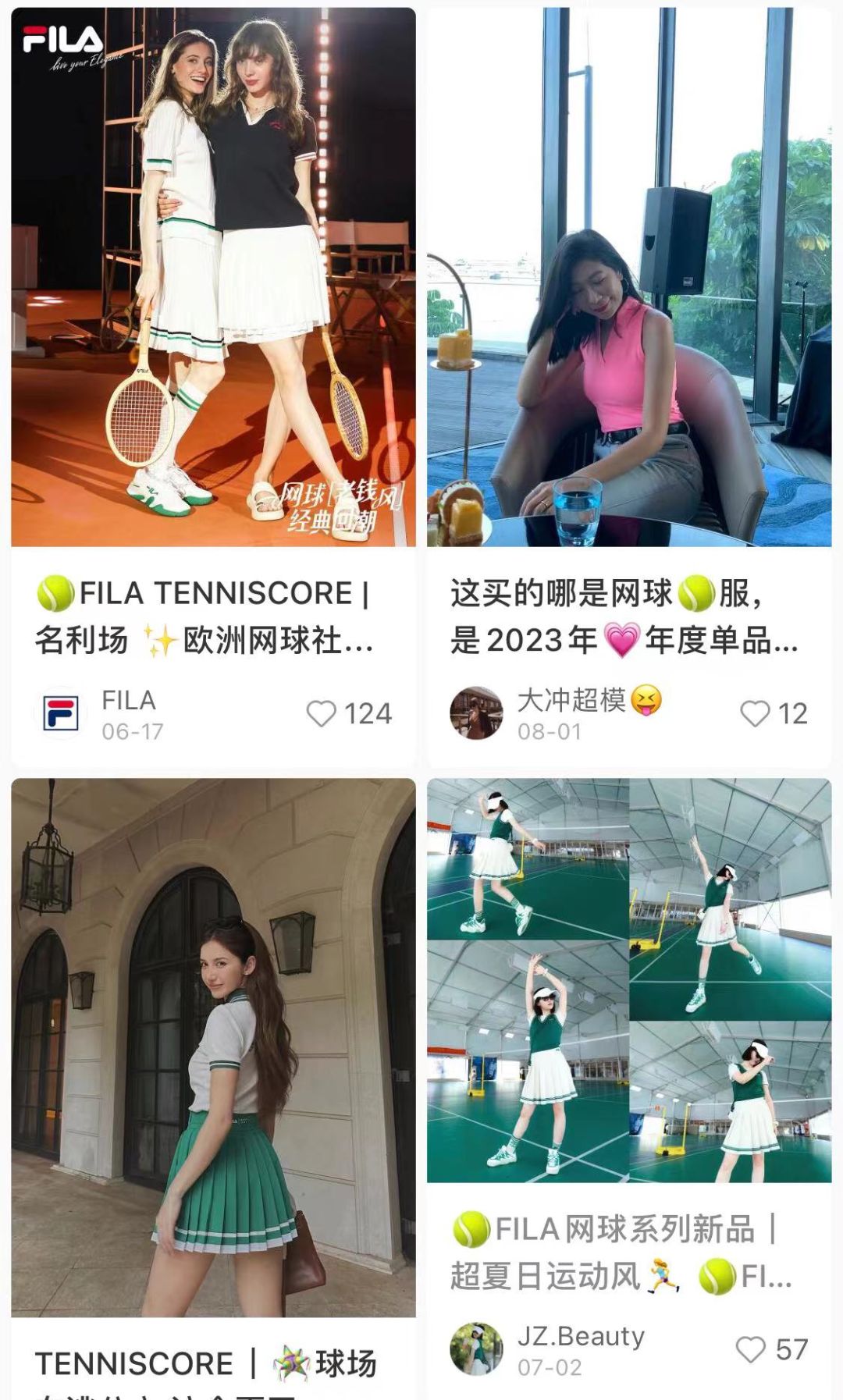 2021年,小红书上就出现了「老钱风」穿搭,但在FILA之前,老钱和网球、运动没太多关系。今年三四月份,「城市网球风」趋势的出现,让FILA感觉到普通用户也开始打网球了。