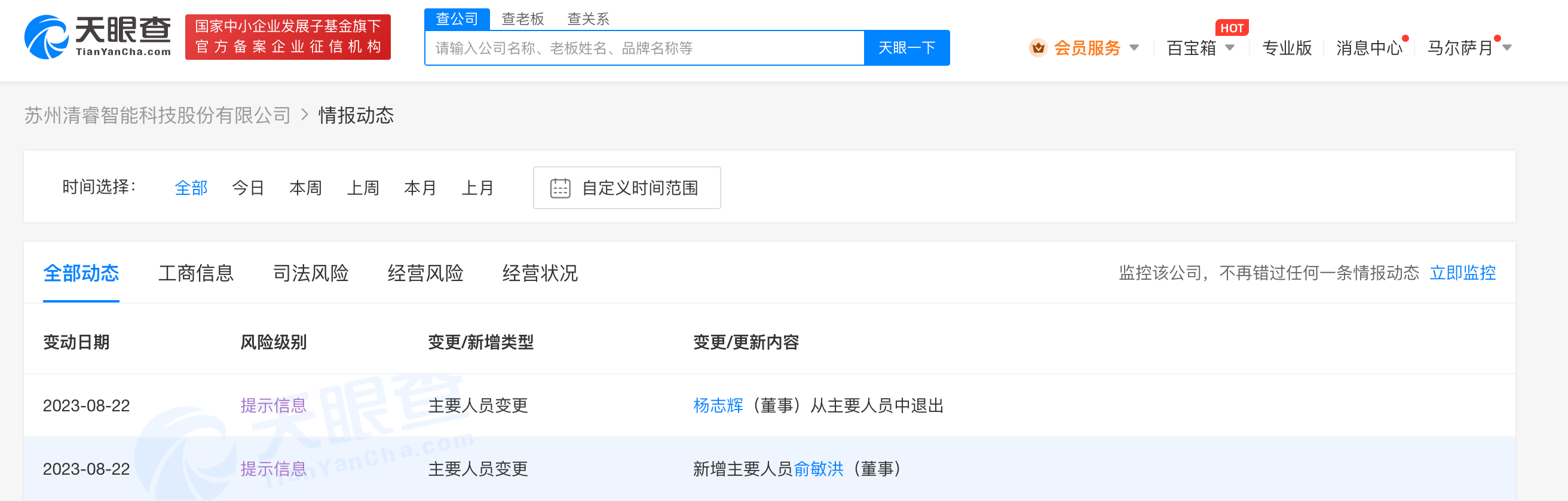 天眼查App显示,近日,苏州清睿智能科技股份有限公司发生工商变更,杨志辉卸任董事,新增俞敏洪为董事。值得一提的是,2022年11月,俞敏洪曾卸任该公司董事。