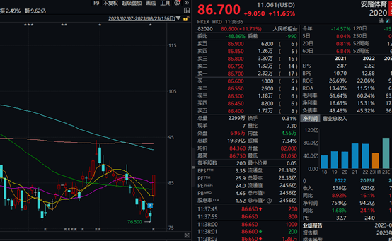 安踏体育昨晚发布2023年中期业绩公告。上述公告显示,2023年上半年,安踏体育整体收益增长14.2%,至人民币296.5亿元(2022年上半年:人民币259.7亿元)。各品牌均表现理想,整体毛利率和经营溢利率对比2022年同期均录得显著提升,整体毛利率达历年最高水平,上升1.3个百分点至63.3%(2022年上半年:62.0%)。经营效率大幅改善,整体经营溢利增长31.6%至人民币76.2亿元(2022年上半年:人民币57.9亿元),经营溢利率上升3.4个百分点至25.7%(2022年上半年:22.3%)。按综合基准,不包括分占合营公司损益影响,股东应占溢利录得强劲反弹大增39.8%至人民币52.6亿元(2022年上半年:人民币37.7亿元)。按综合基准,包括分占合营公司损益影响,股东应占溢利增长32.3%至人民币47.5亿元(2022年上半年:人民币35.9亿元)。