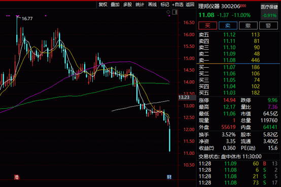 另外,理邦仪器今天上午盘中股价大跌超过10%。