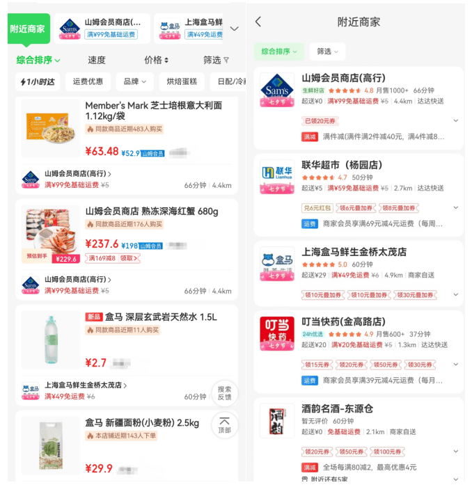 有意思的是,此次价格战的两大主角山姆、盒马,因线下门店均已整体入驻京东到家,在京东到家平台上实现了“同场PK”,更与七鲜、麦德龙、伊藤洋华堂、Ole'等精品超市一起,为消费者呈上了“网红爆品小时达”的精彩戏码。