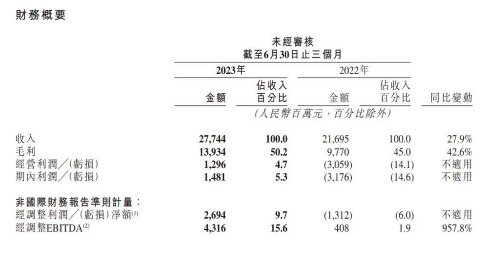 财报数据显示,二季度,快手总营收达277.4亿元,同比增长27.9%;并在上市后首次录得集团层面国际会计准则净利润,期内集团盈利14.8亿元,经调整净利润26.9亿元,去年同期则为亏损13.1亿元。