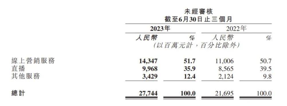 具体业务方面,期内线上营销服务、直播、其他服务等均保持增长态势。