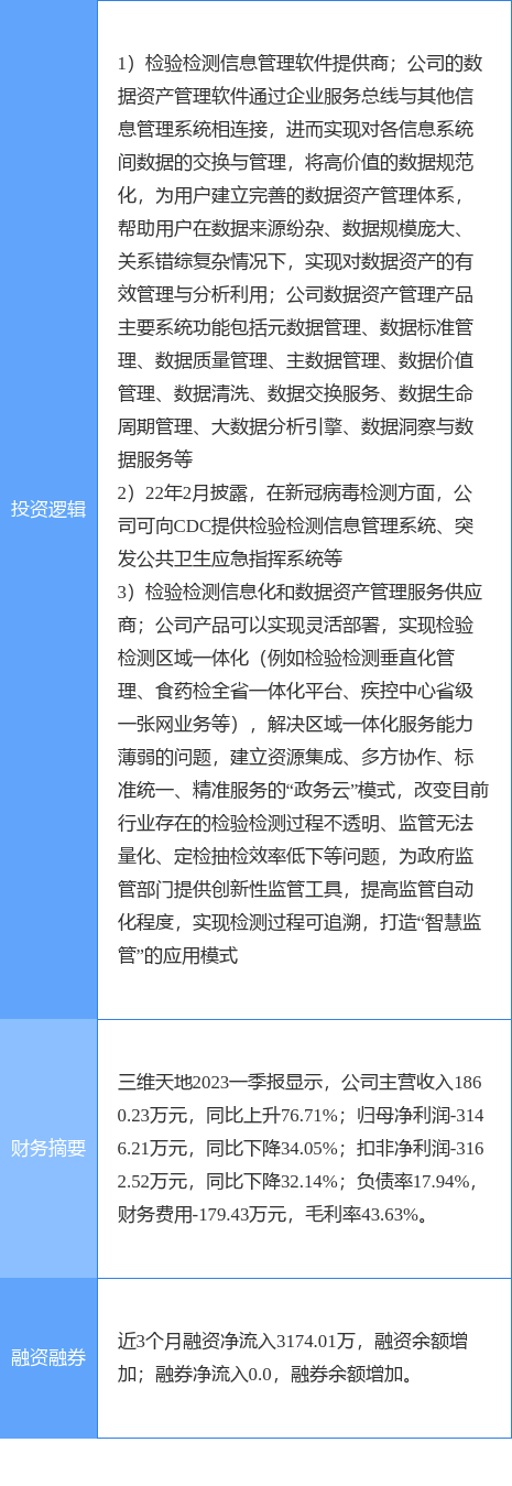 三维天地涨停收盘,收盘价68.28元。该股于9点25分涨停,未打开涨停,截止收盘封单资金为2.42亿元,占其流通市值10.83%。