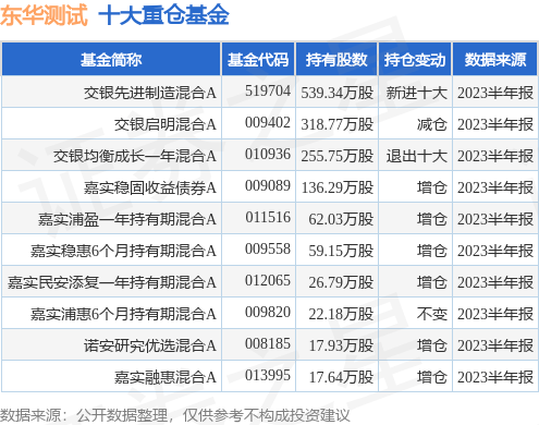 重仓东华测试的前十大公募基金请见下表: