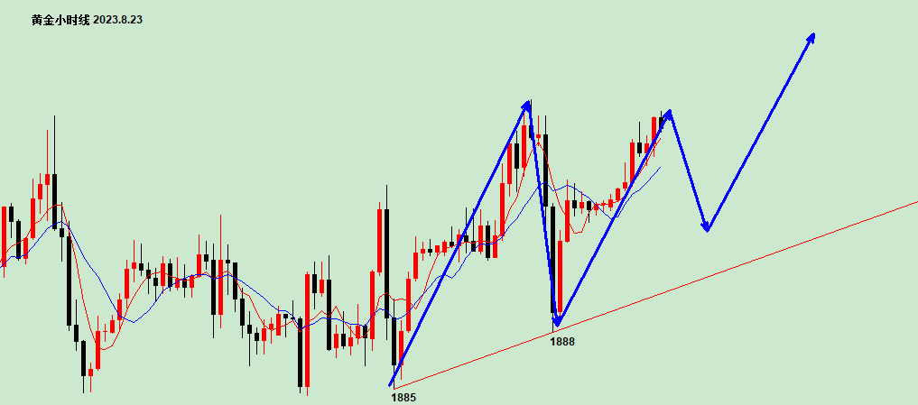 昨晚我们黄金1890/89的多,今天早上在1900止盈后,今天我们继续找位置多,大概的思路是以昨日低点1888为防守做回调的多,目标看到1906-11。