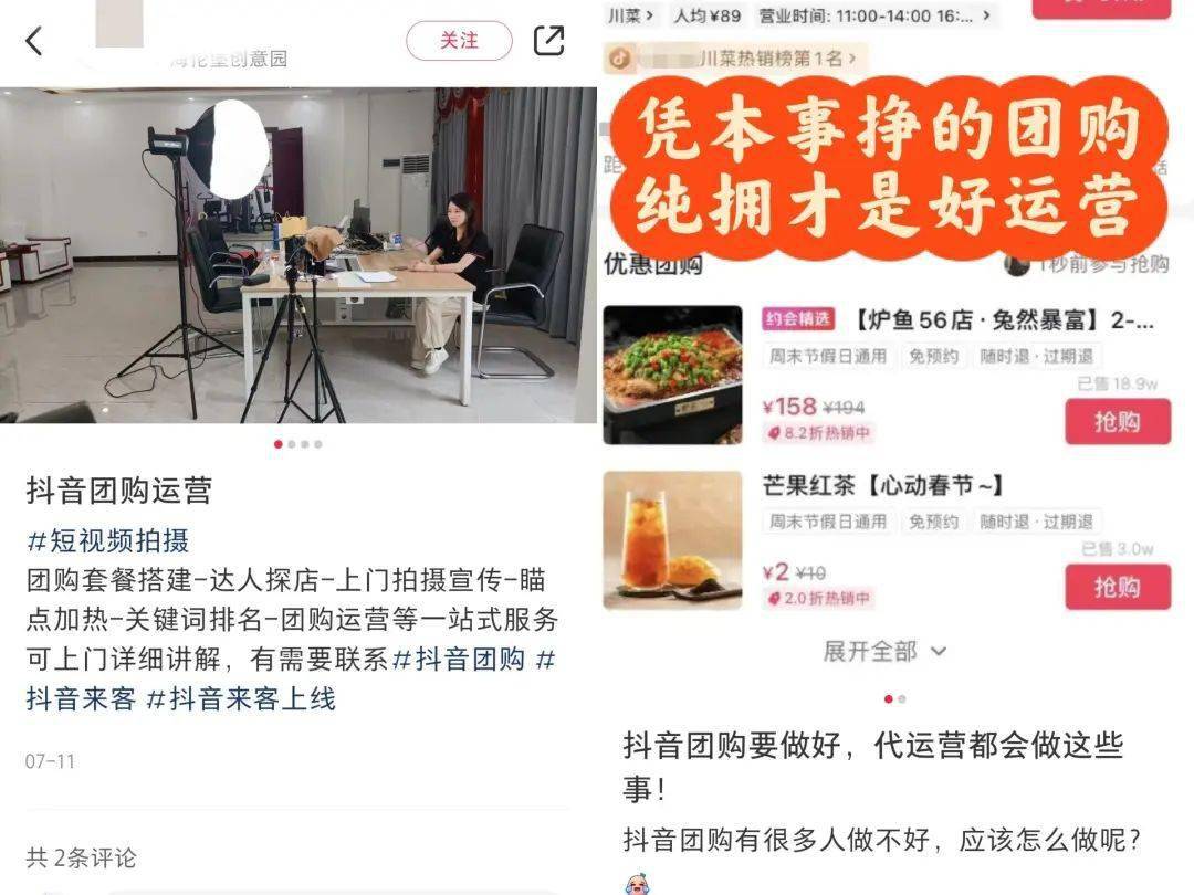 不少服务商,都针对抖音团购推出了内容代运营服务
