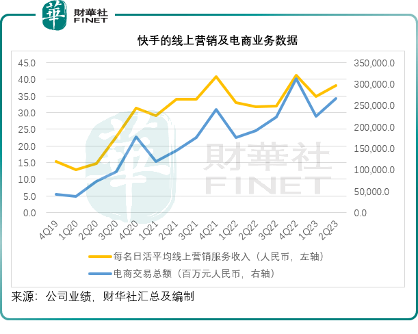 快手没有披露电商业务的实际收入占多少,但是从其提供的业务量数据来看,电商业务持续保持强劲,或显示出消费者正逐渐形成对于短视频电商平台的消费习惯。2023年第2季,快手的电商交易总额同比增长38.86%,至2654.56亿元,见下图。