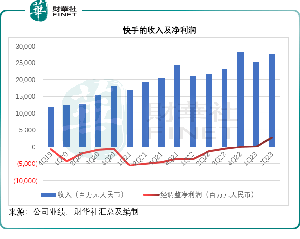在上季扭亏为盈之后,短视频社交平台运营商快手在2023年第2季的盈利能力得到了进一步提升。季度收入同比增长27.88%,至277.44亿元(单位人民币,下同);季度毛利率由去年同期的45.03%,上升至50.22%,主要得益于高毛利业务收入占比提高,包括电商和广告;股东应占净利润达到14.8亿元,而去年同期为净亏损31.76亿元。如果不考虑非经常性款项,其经调整利润实际为26.94亿元,而去年同期为净亏损13.12亿元。显然,其最新财季业绩得到了很大的提升。