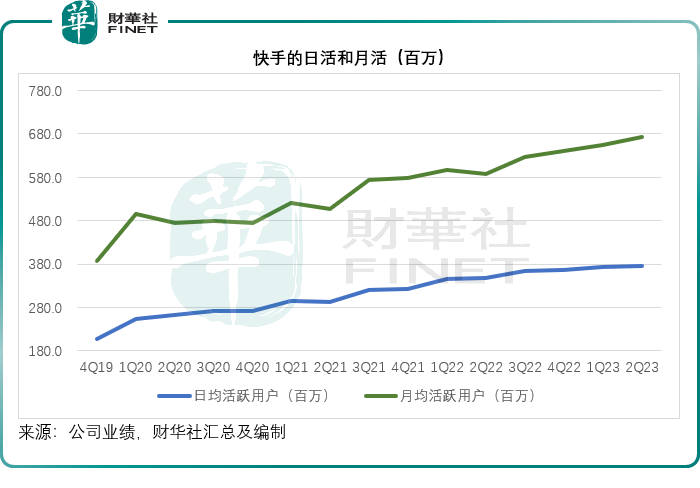 2023年第2季,快手的日均活跃用户(DAU)同比增长8.26%,至3.76亿;而月均活跃用户(MAU)则按年增长14.76%,至6.73亿。然而,日活用户的平均使用时长却按年下降6.39%,至117.2分钟,快手解释,疫情后,用户重新分派线上和线下时间,因此与去年同期相比减少。
