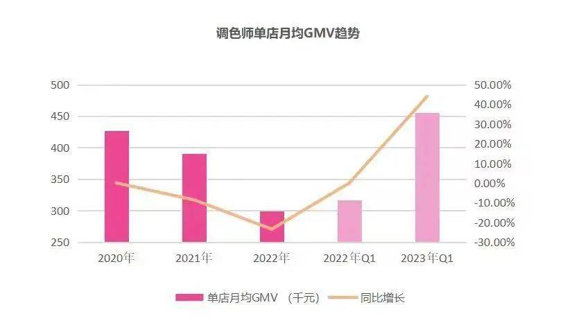 (图 / 近年调色师单店月均GMV变化)