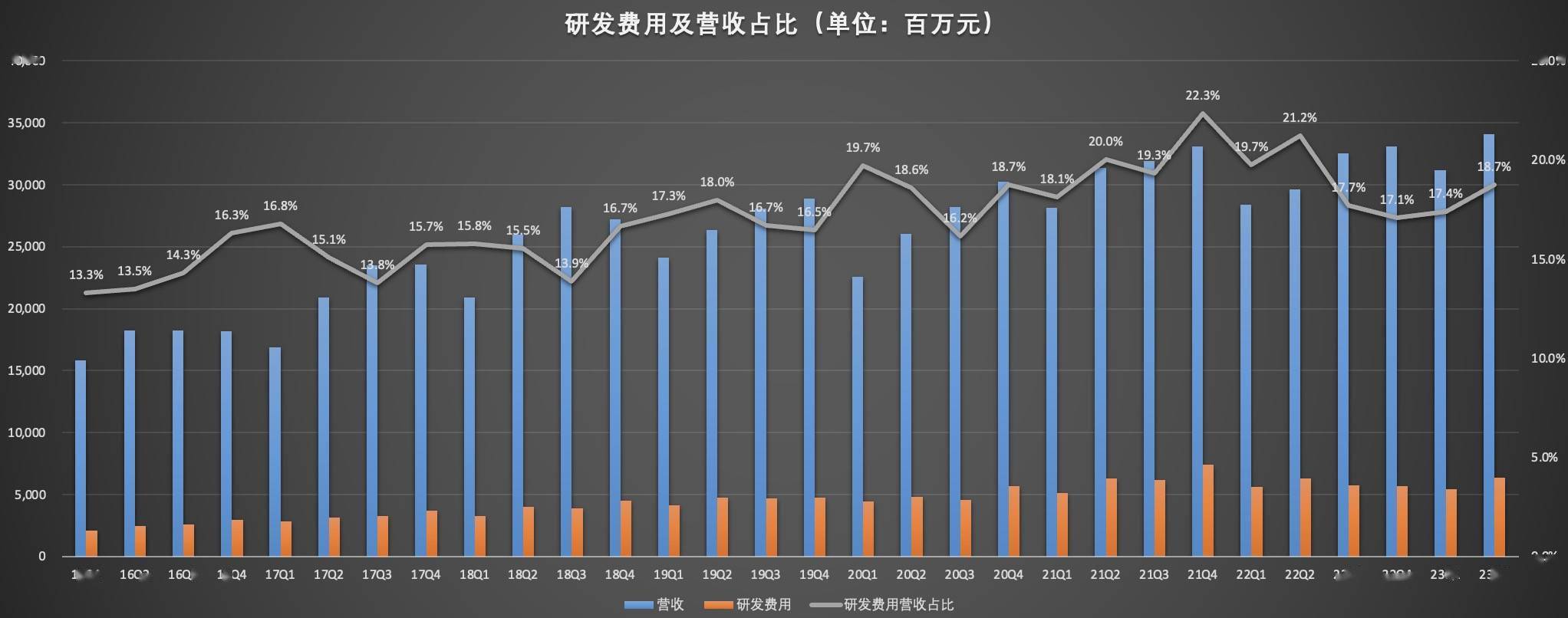 百度可以说是国内在AI投入做早、最大的公司。在AI领域投资了十多年。今年二季度,百度研发费用同比增长1.4%,环比增长17.7%至64亿元,研发费用率为18.7%。