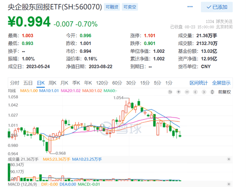 主流ETF方面,央企股东回报ETF(560070)跌0.70%,成交额超2100万元!