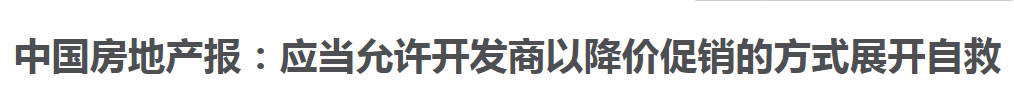 而文章还特别提到降房价,应当让开发商有更大的降价自主权,可以让开发商通过降价促销等方式展开自救,以尽快回笼资金。