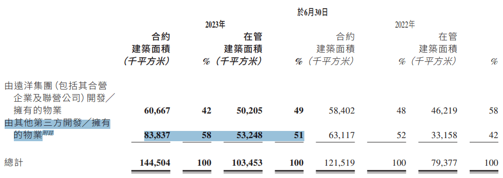 这意味着,远洋服务如今的在管规模中,有一半来自于第三方拓展。