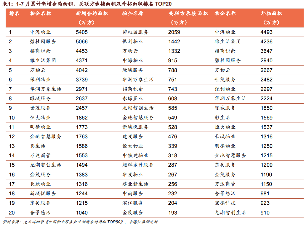 上半年以来,行业强者恒强局势持续,关联房企拿地、销售排名较好的物企面积及承接确定性强,但是新增关联方承接面积排名靠前,基本以国央企为主。