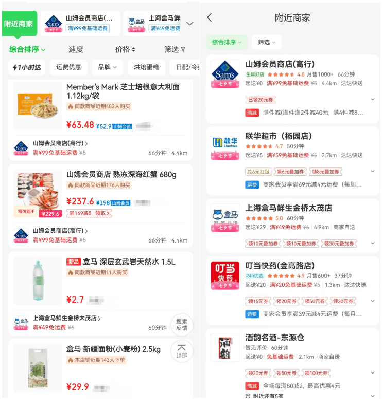 有意思的是,此次价格战的两大主角山姆、盒马,因线下门店均已整体入驻京东到家,在京东到家平台上实现了“同场PK”,更与七鲜、麦德龙、伊藤洋华堂、Ole'等精品超市一起,为消费者呈上了“网红爆品小时达”的精彩戏码。