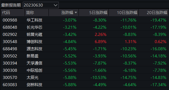另一方面,在单日基金净值跌幅榜上,国融融盛龙头严选A、诺德新生活A、鹏华创新未来等基金跌幅居前,跌幅均超过4.2%。