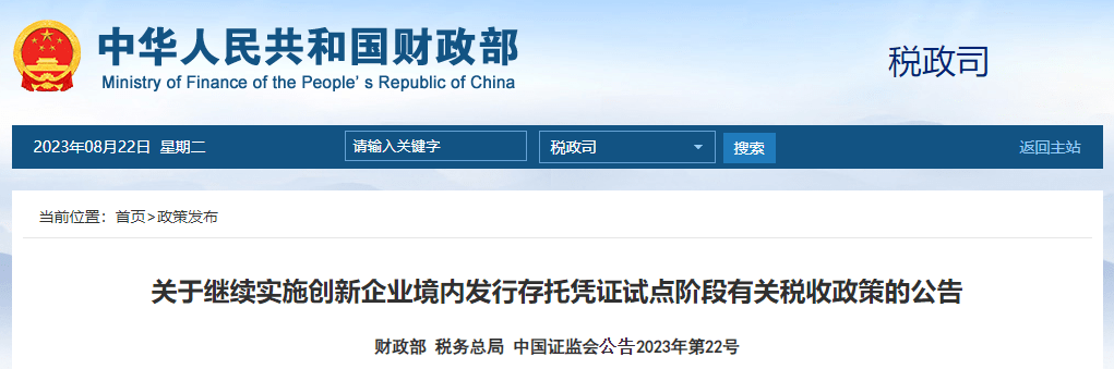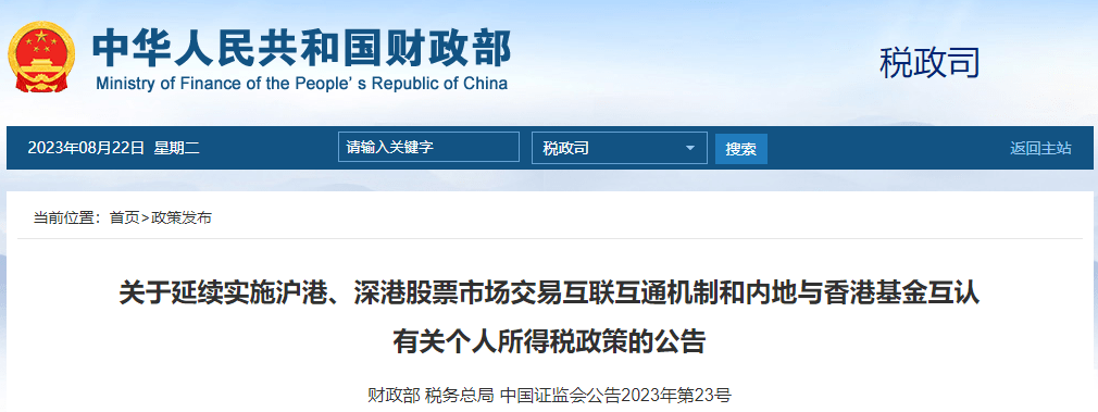 财政部 税务总局 中国证监会公告2023年第22号