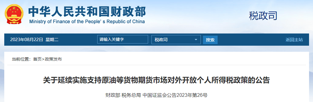 关于延续实施支持原油等货物期货市场对外开放个人所得税政策的公告