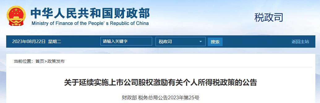 关于延续实施上市公司股权激励有关个人所得税政策的公告