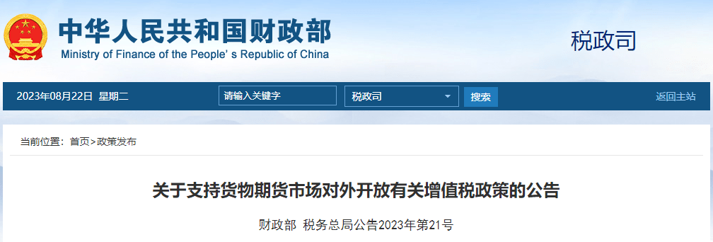 关于支持货物期货市场对外开放有关增值税政策的公告