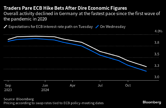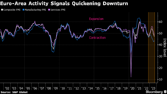 欧元区私营部门经济活动萎缩加剧,令投资者押注欧洲央行下月将暂停加息。