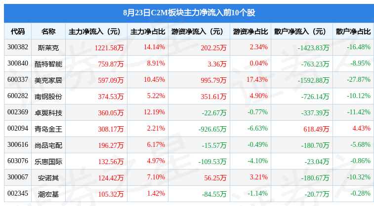 从资金流向上来看,当日C2M板块主力资金净流出1.06亿元,游资资金净流入3316.84万元,散户资金净流入7289.03万元。C2M板块个股资金流向见下表: