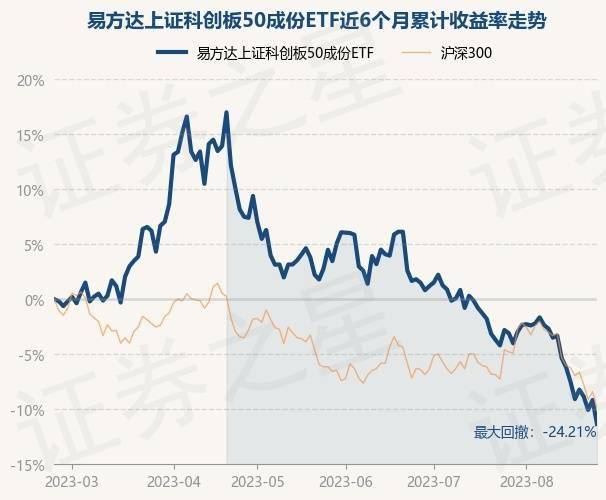 8月23日,易方达上证科创板50成份ETF最新单位净值为0.901元,累计净值为0.6313元,较前一交易日下跌2.4%。历史数据显示该基金近1个月下跌7.94%,近3个月下跌13.27%,近6个月下跌11.35%,近1年下跌21.17%。该基金近6个月的累计收益率走势如下图: