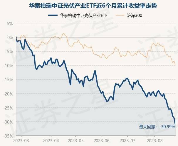 8月23日,华泰柏瑞中证光伏产业ETF最新单位净值为1.0077元,累计净值为1.0077元,较前一交易日下跌3.14%。历史数据显示该基金近1个月下跌13.2%,近3个月下跌18.61%,近6个月下跌30.99%,近1年下跌45.09%。该基金近6个月的累计收益率走势如下图: