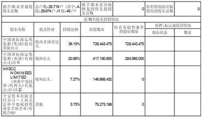 注2:HKSCC NOMINEES LIMITED (香港中央结算(代理人)有限公司),为H股非登记股东所持股份的名义持有人。报告期末,登记在HKSCC NOMINEES LIMITED (香港中央结算(代理人)有限公司)的持股数量为278,874,032股H股,上表中HKSCC NOMINEES LIMITED (香港中央结算(代理人)有限公司)的持股数量及持股比例未包含登记在其名下的中国国际海运集装箱(香港)有限公司持有的132,205,600 股H股。