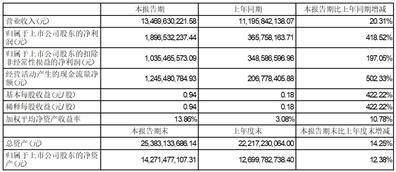 2023年上半年,在全面贯彻新发展理念、加快构建新发展格局、着力推动高质量发展、统筹国内国际两个大局的宏观背景下,本公司业绩表现势如破竹、再攀高峰,净利润创同期历史之最,取得里程碑式突破。本公司实现营业收入人民币13,469.63百万元,同比上升20.31%;实现归属于上市公司股东的净利润人民币1,896.53百万元,同比显著提升418.52%;实现归属于上市公司股东的扣除非经常性损益的净利润人民币1,035.47百万元,同比大幅增长197.05%。