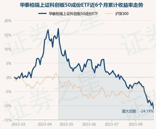 8月23日,华泰柏瑞上证科创板50成份ETF最新单位净值为0.9106元,累计净值为0.6359元,较前一交易日下跌2.4%。历史数据显示该基金近1个月下跌7.95%,近3个月下跌13.28%,近6个月下跌11.25%,近1年下跌20.89%。该基金近6个月的累计收益率走势如下图: