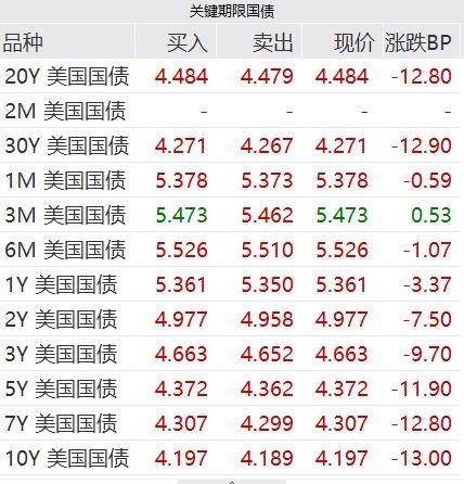 美东时间8月23日,美债收益率普遍收跌,2年期美债收益率跌7.5个基点报4.977%,3年期美债收益率跌9.7个基点报4.663%,5年期美债收益率跌11.9个基点报4.372%,10年期美债收益率跌13个基点报4.197%,30年期美债收益率跌12.9个基点报4.271%。