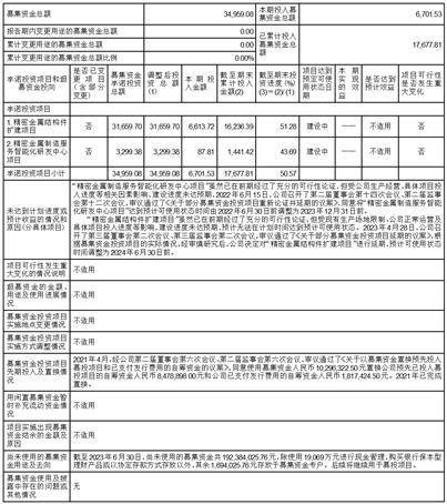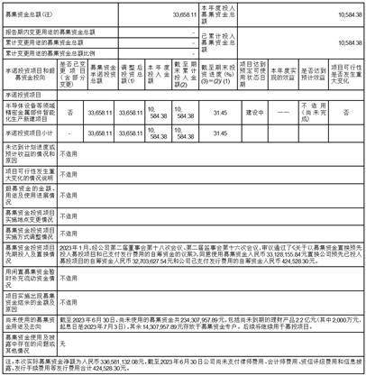 2023年半年度募集资金使用情况对照表