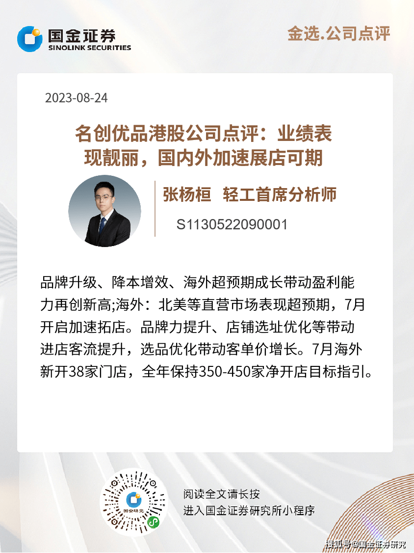 海外:北美等直营市场表现超预期,7月开启加速拓店。4Q海外营收11.1亿元(同比+42%),门店数2187家(同比/环比+214/+56家),北美/拉丁美洲/欧洲/亚洲单店GMV水平恢复至19年同期193%/89%/92%/64%,2H直营市场单店营收+50%,美国、印尼等直营市场单店提升亮眼,4QFY23美国区域营收+120%,单店营收增速超60%,美国占比提升至接近20%,品牌力提升、店铺选址优化等带动进店客流提升,选品优化带动客单价增长。7月海外新开38家门店,全年保持350-450家净开店目标指引。