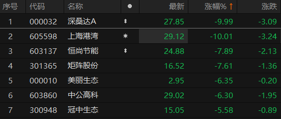 原标题:建筑装饰板块走低 深桑达A、上海港湾跌停