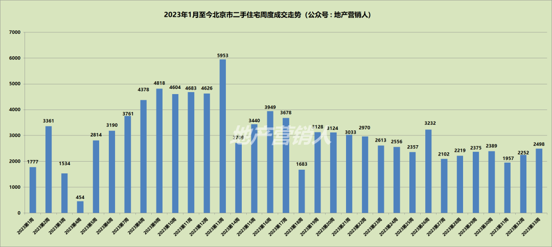 二手房方面,上周北京二手住宅成交2498套,环比上涨11%;成交面积22.41万㎡,环比上涨10%。