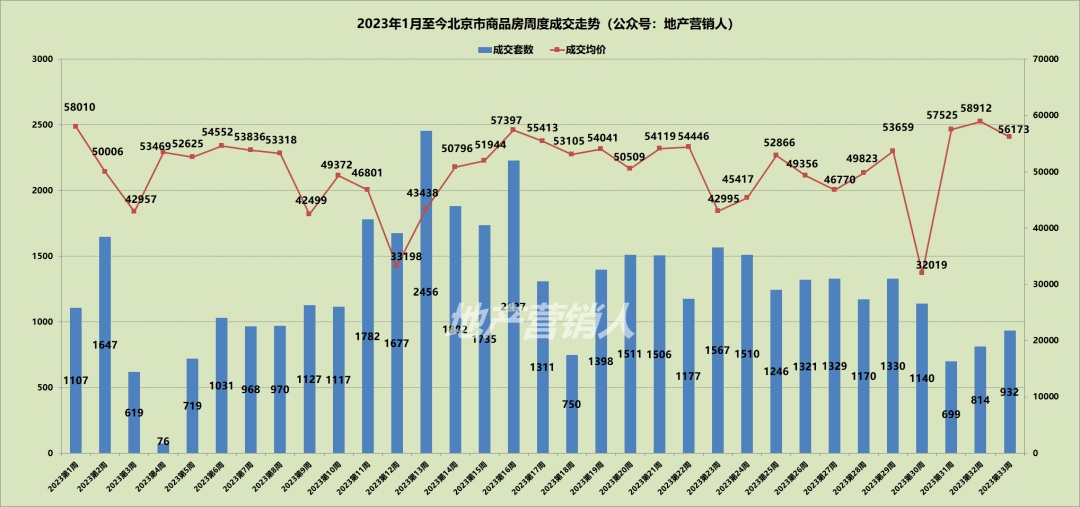 根据最新统计数据显示,上周(8月14日—8月20日),北京市商品房成交932套,环比上涨14%;成交面积13.76万㎡,环比上涨22%;成交均价56173元/㎡,环比下降5%;成交金额77.29亿元,环比上涨16%。