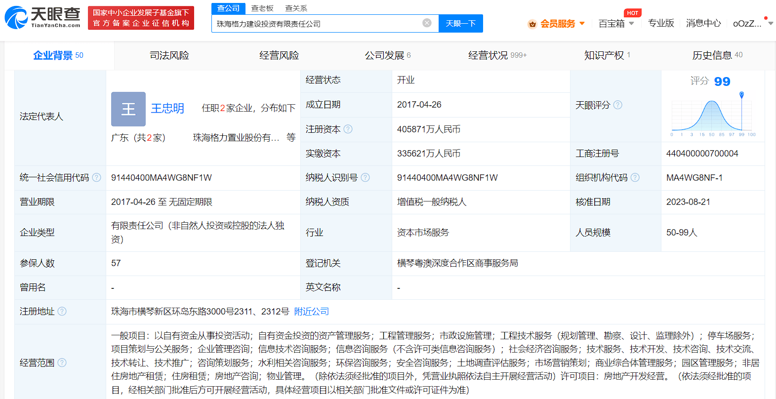 天眼查App显示,近日,珠海格力建设投资有限责任公司发生工商变更,注册资本由约33.56亿人民币增至约40.59亿人民币,同时公司经营范围新增自有资金投资的资产管理服务、工程管理服务、商业综合体管理服务、园区管理服务、房地产开发经营等。