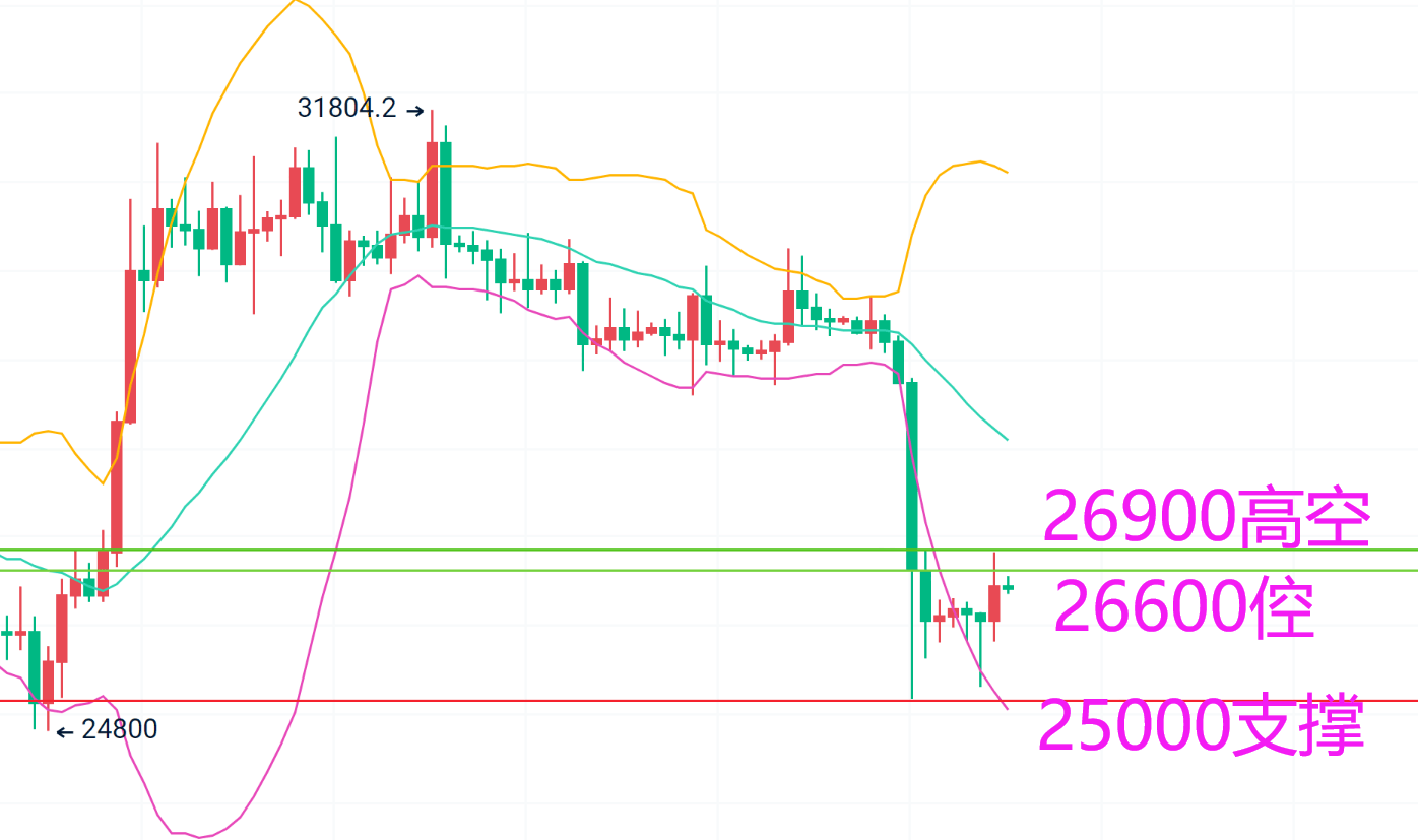 比特币策略:26600跟26900空,目标26000-25500-25000,防守27100