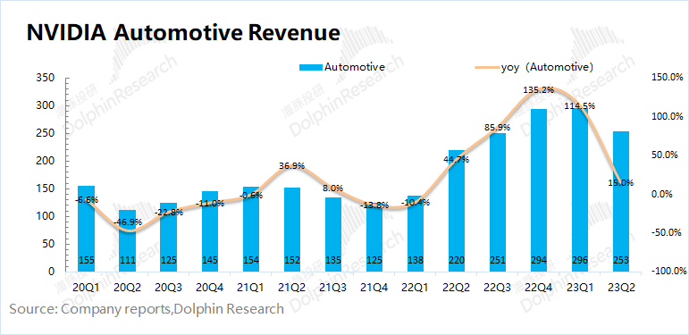 2.3 汽车业务:2024财年第二季度英伟达汽车业务实现营收2.53亿美元,同比增长15%,这些增长主要来自于自动驾驶和人工智能驾驶舱解决方案的收入。