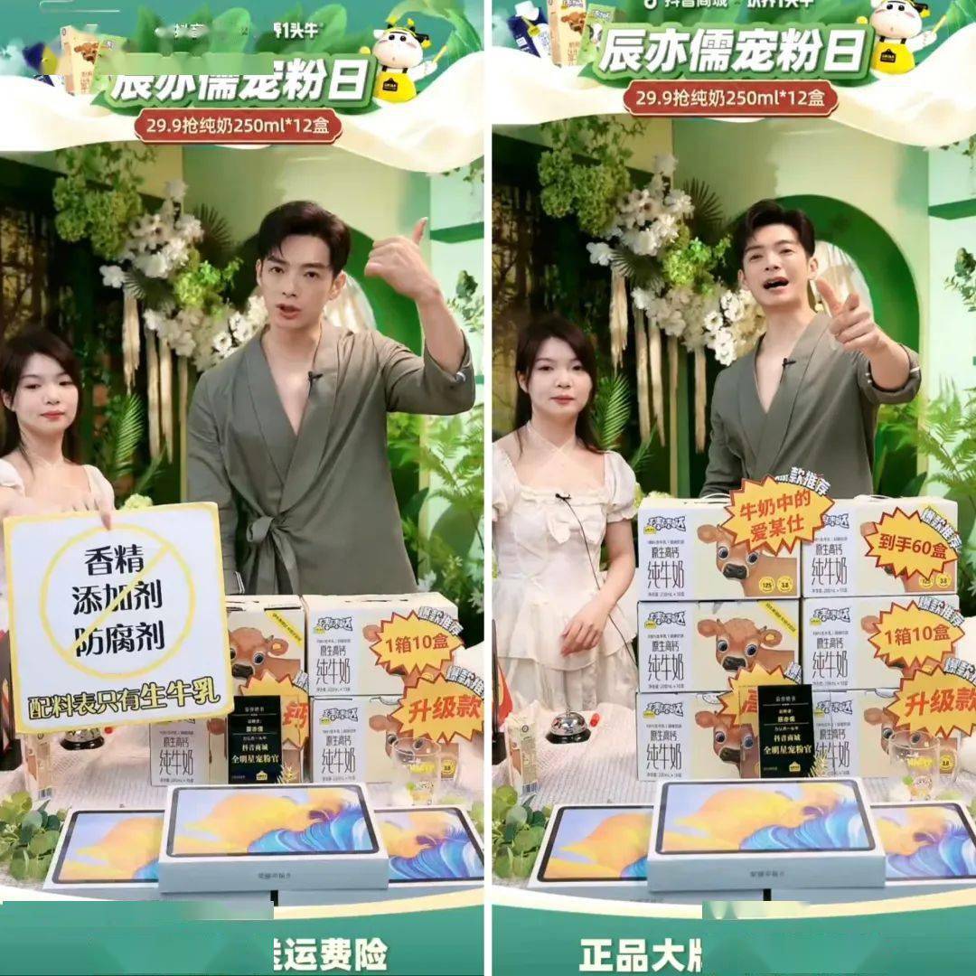 时间来到8月7日,辰亦儒如约来到认养一头牛的官方直播间,成功联动品牌打通了从内容场向抖音商城转化的路径、实现了用户在商城的高效沉淀。在他的大力助阵之下,认养一头牛得以在抖音商城迎来了生意大爆发。