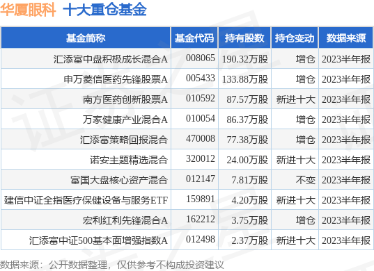 根据2023半年报公募基金重仓股数据,重仓该股的公募基金共11家,其中持有数量最多的公募基金为汇添富中盘积极成长混合A。汇添富中盘积极成长混合A目前规模为26.66亿元,最新净值1.0738(8月23日),较上一交易日下跌1.36%,近一年下跌25.27%。该公募基金现任基金经理为郑磊。郑磊在任的基金产品包括:汇添富创新医药混合,管理时间为2018年8月8日至今,期间收益率为58.14%;汇添富医药保健混合,管理时间为2019年4月9日至今,期间收益率为38.32%;汇添富医疗积极成长一年持有混合A,管理时间为2020年8月21日至今,期间收益率为-38.9%。