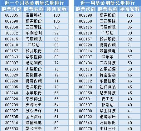 从个股调研情况上来看,最近1个月(7月24日-8月24日)最受公募基金关注的是容百科技,属于电子专用材料制造行业,主营业务为锂电池正极材料及其前驱体,共有138家基金管理公司参与调研,其次是博实股份和三花智控,分别接受106家、93家基金管理公司的调研;