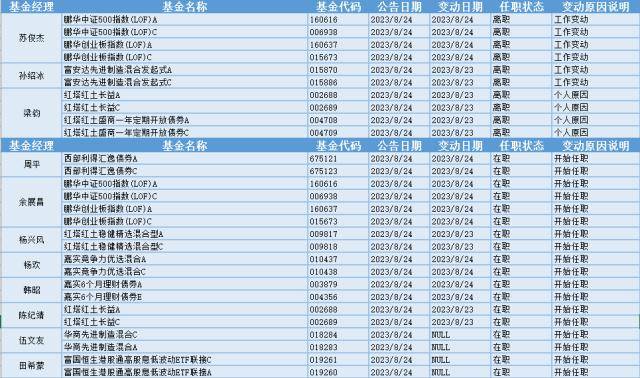 根据巨灵统计的数据显示,近30天(7.25-8.24)共有409只基金产品的基金经理发生离职变动,其中今天(8.24)有10只基金产品发布基金经理离职公告,从变动原因上来看,有2位基金经理是由于工作变动而从管理的6只基金产品中离职,有1位基金经理是由于个人原因而从管理的4只基金产品中离职。