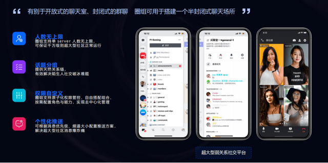 在《白皮书》对IM PaaS新产品形态的分析中,多次提及了“类Discord”的IM模式。疫情阻隔世人见面后,新一代互联网虚拟社交平台Discord 快速破圈并风靡全球,成为互联网现象级产品,一度获得微软超过 120 亿美金的投资垂青——Discord在2015年跟网易云信等平台同期上线,最初服务于游戏用户运营,其突破传统IM平台的群聊能力,向超大规模甚至无限人数的即时通讯社群演进。